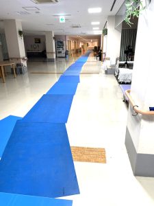大きな機械ですので、施設に持ち込む際はこのように養生シートを敷き詰めてその上を運びました。
